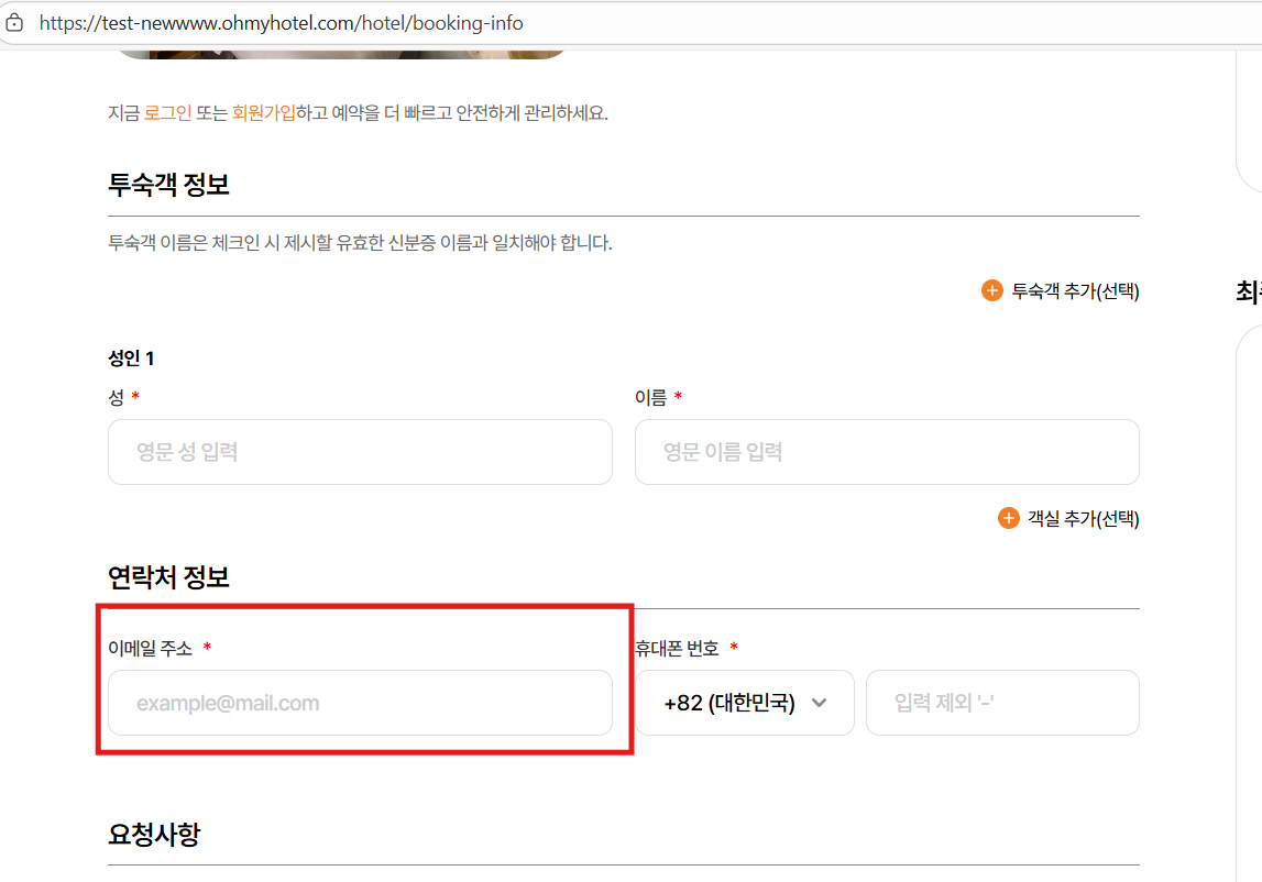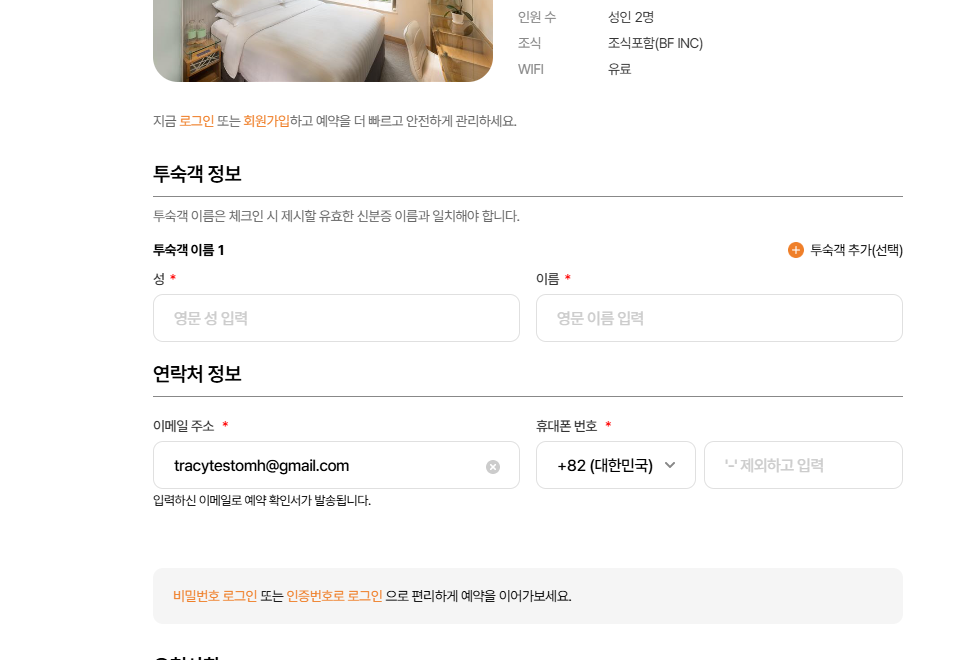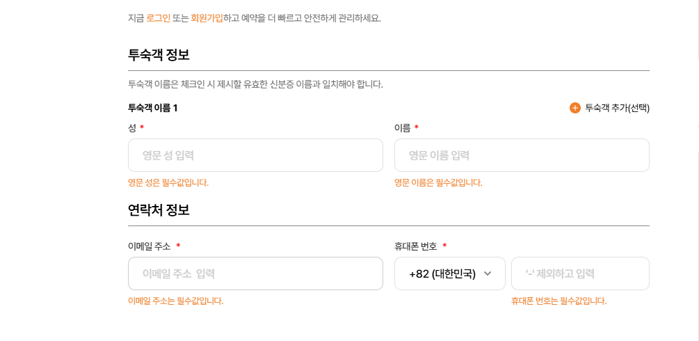 btn thứ 2 là add room (đối với trường hợp mà user chọn từ 2 phòng trở lên sẽ hiển thị btn này, còn user chọn 1 phòng thì sẽ ko hiển thị), click-> thêm field nhập thông tin cho guest của phòng số 2.