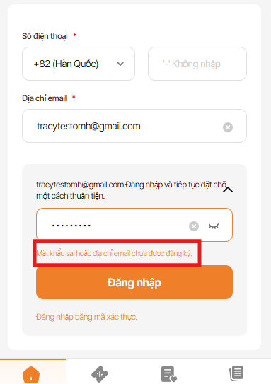 As is: Password sai hoặc email address chưa được đăng ký.