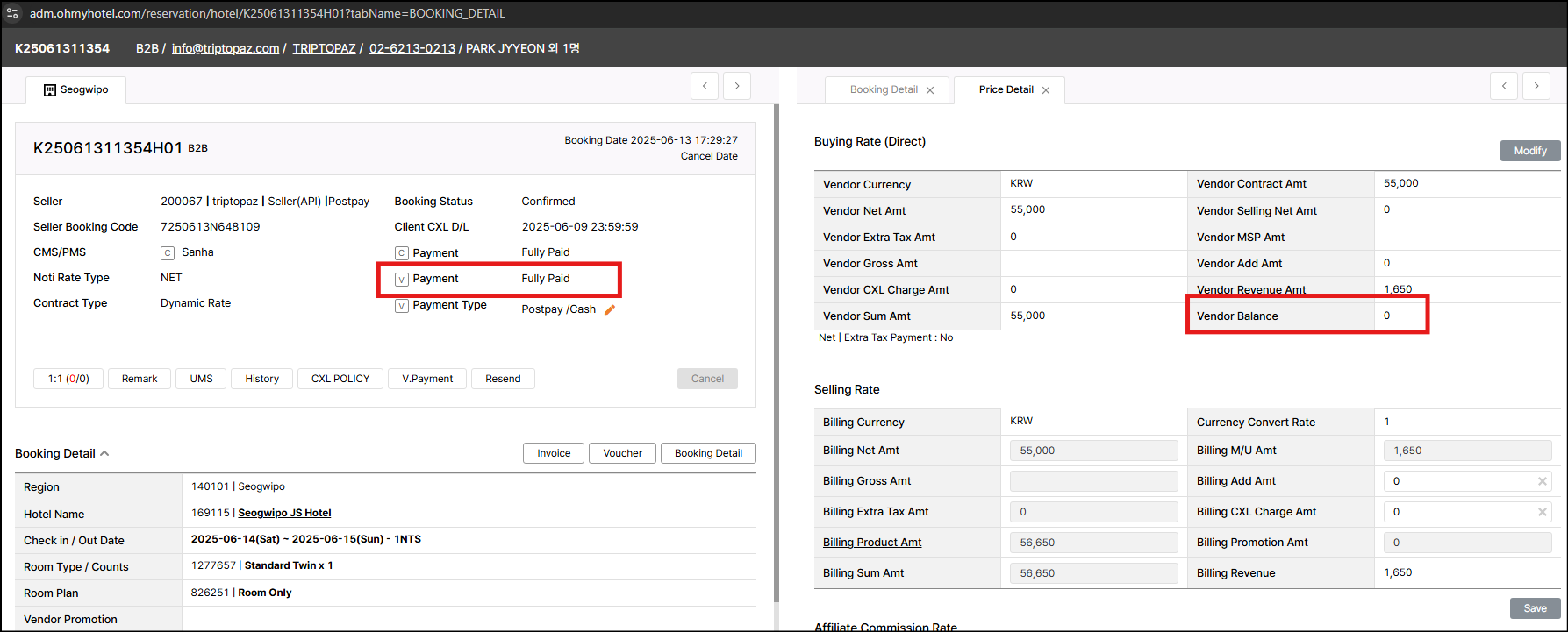 Booking K25061311354H01