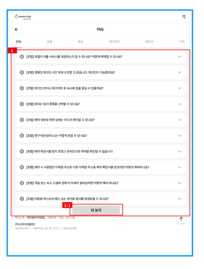 1-1) Hiển thị cố định nút “더보기”(Xem thêm) ở cuối danh sách để cho phép tải thêm các mục FAQ.