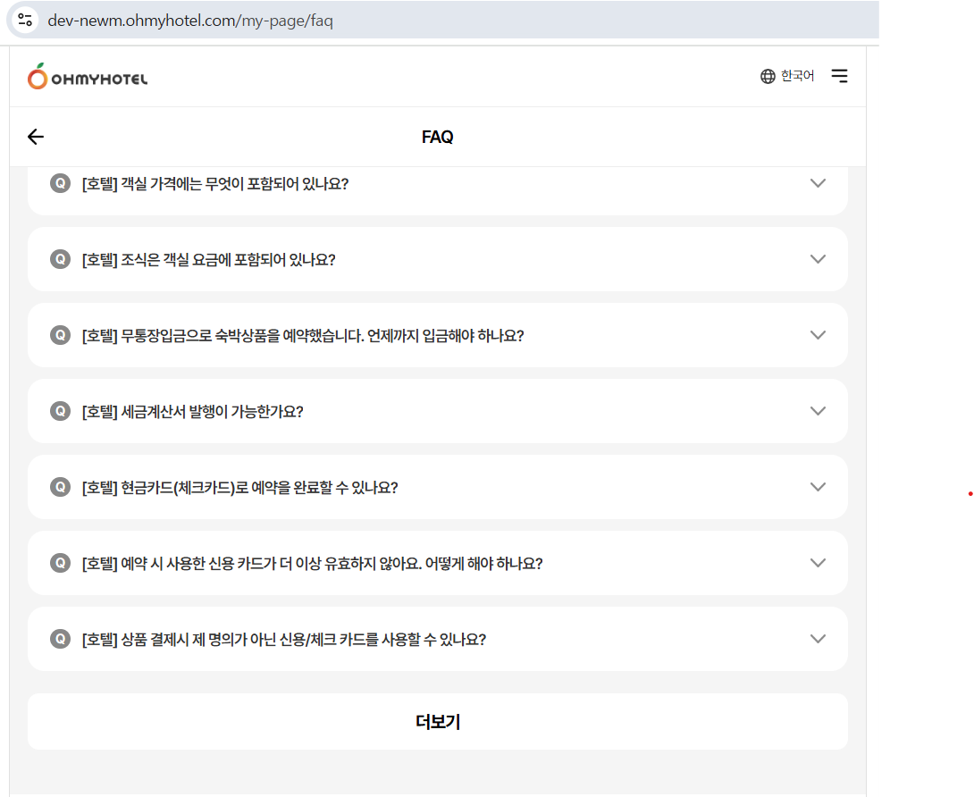 Khi người dùng nhấn “더보기”, các mục FAQ tiếp theo sẽ được hiển thị dần theo thứ tự.