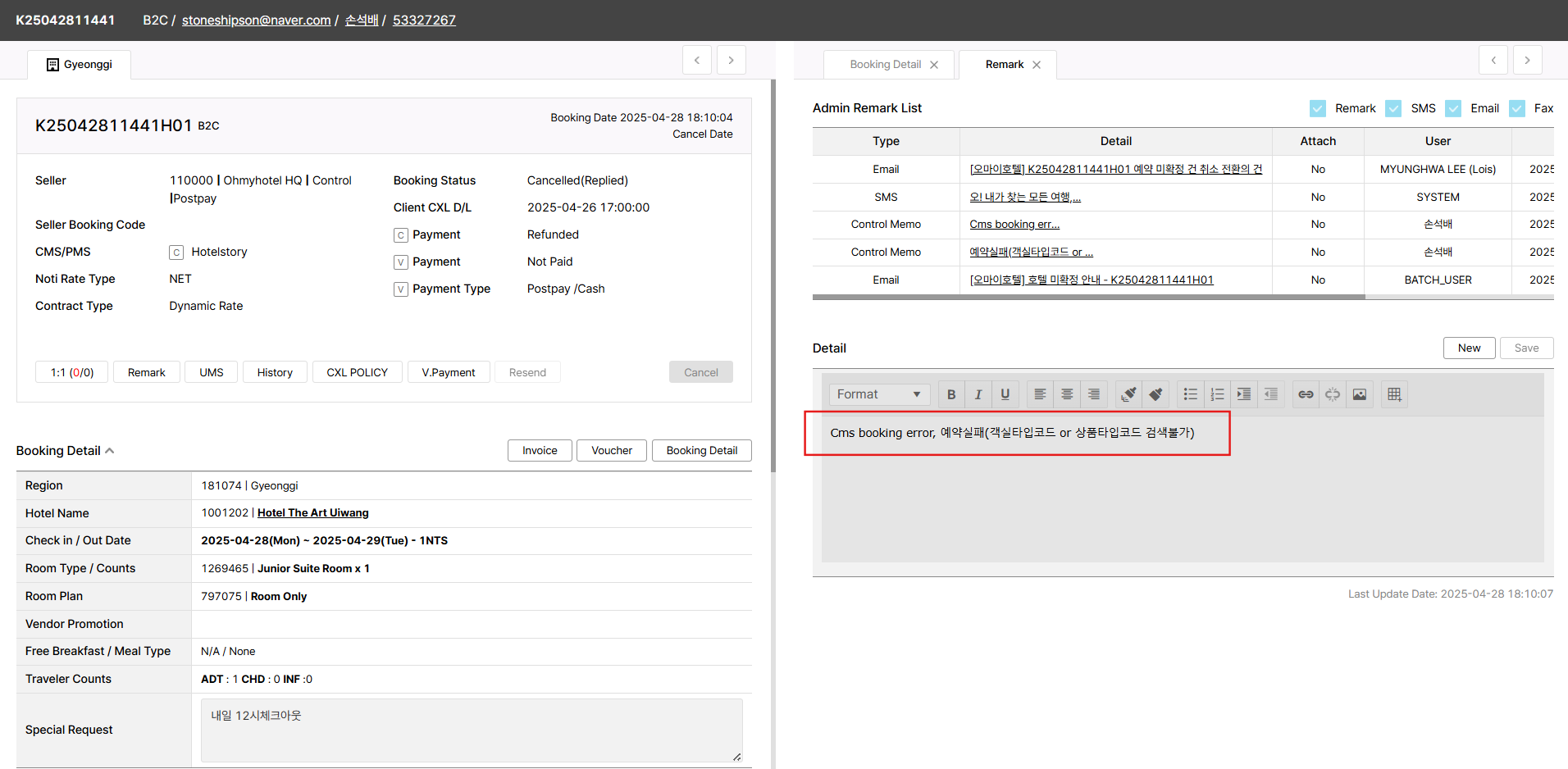 closedHotel booking_K25042811441H01 booking error_Hotel The Art Uiwang