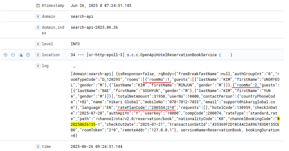 But on Hikari, there are 2 rooms, and Hikari requested the system log regarding this booking.