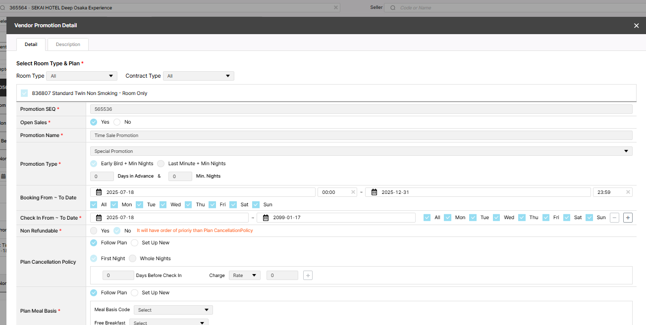 I wanted to make a test reservation for a facility that has set up a promotion, but the promotion I set up is not displayed in the Create Booking window.