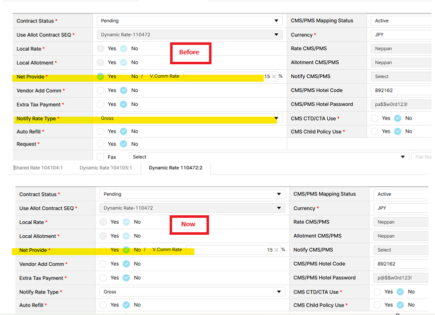 Do trước đó contract thiết lập giá cho Net provide là "Yes" nên giá gross không có trong database vậy nên sau khi đổi Net provide từ "Yes" sang "No" thì cần phải báo cho hotel đẩy lại toàn bộ giá khi đó giá sẽ được tính lại dựa trên thiết lập mới