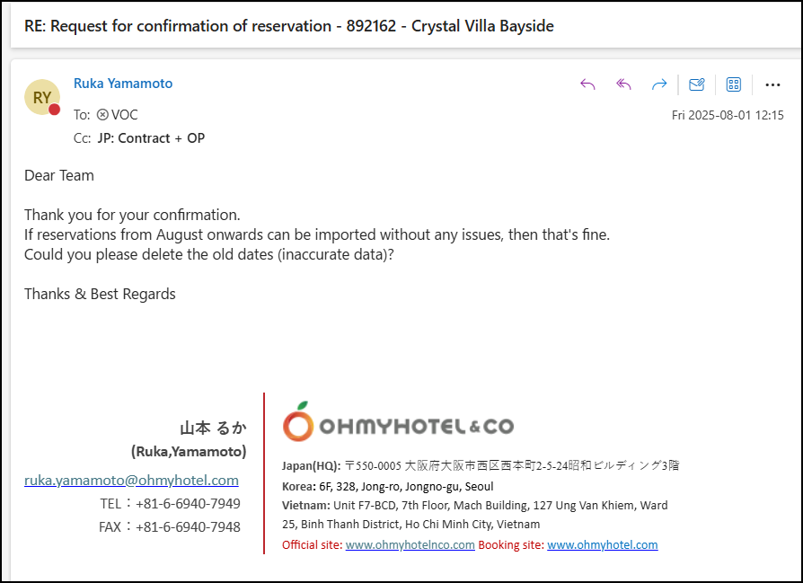 closed[VOC]: Request for confirmation of reservation - 892162 - Crystal Villa Bayside