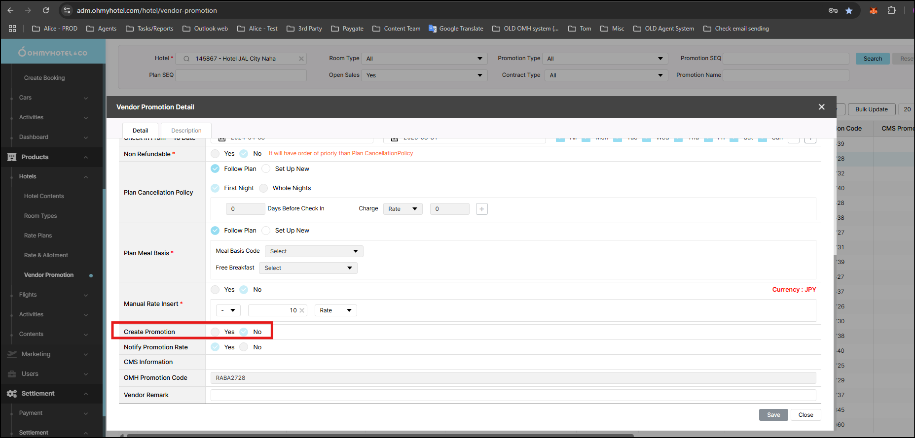 closed[VOC]: Change promotion settings request 145867 - Hotel JAL City Naha