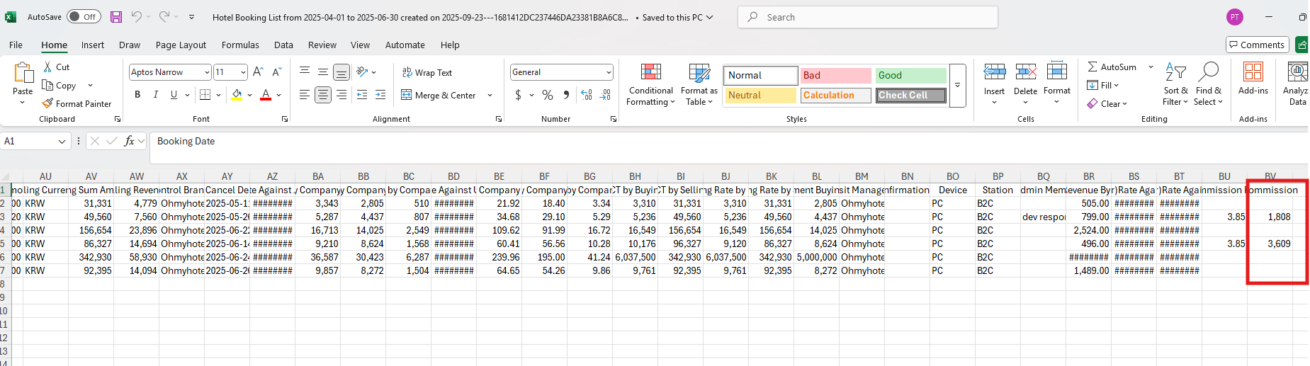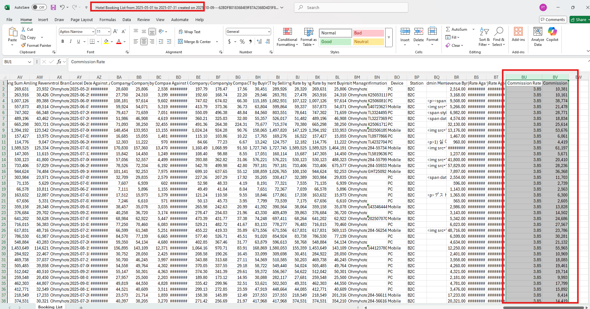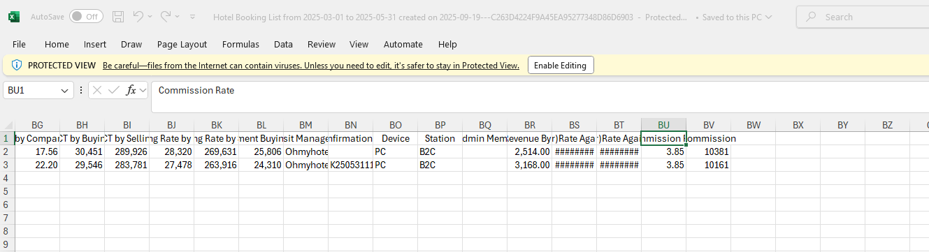 And I have another question, please let me know about when the booking non exists that field, what we show on the excel file export