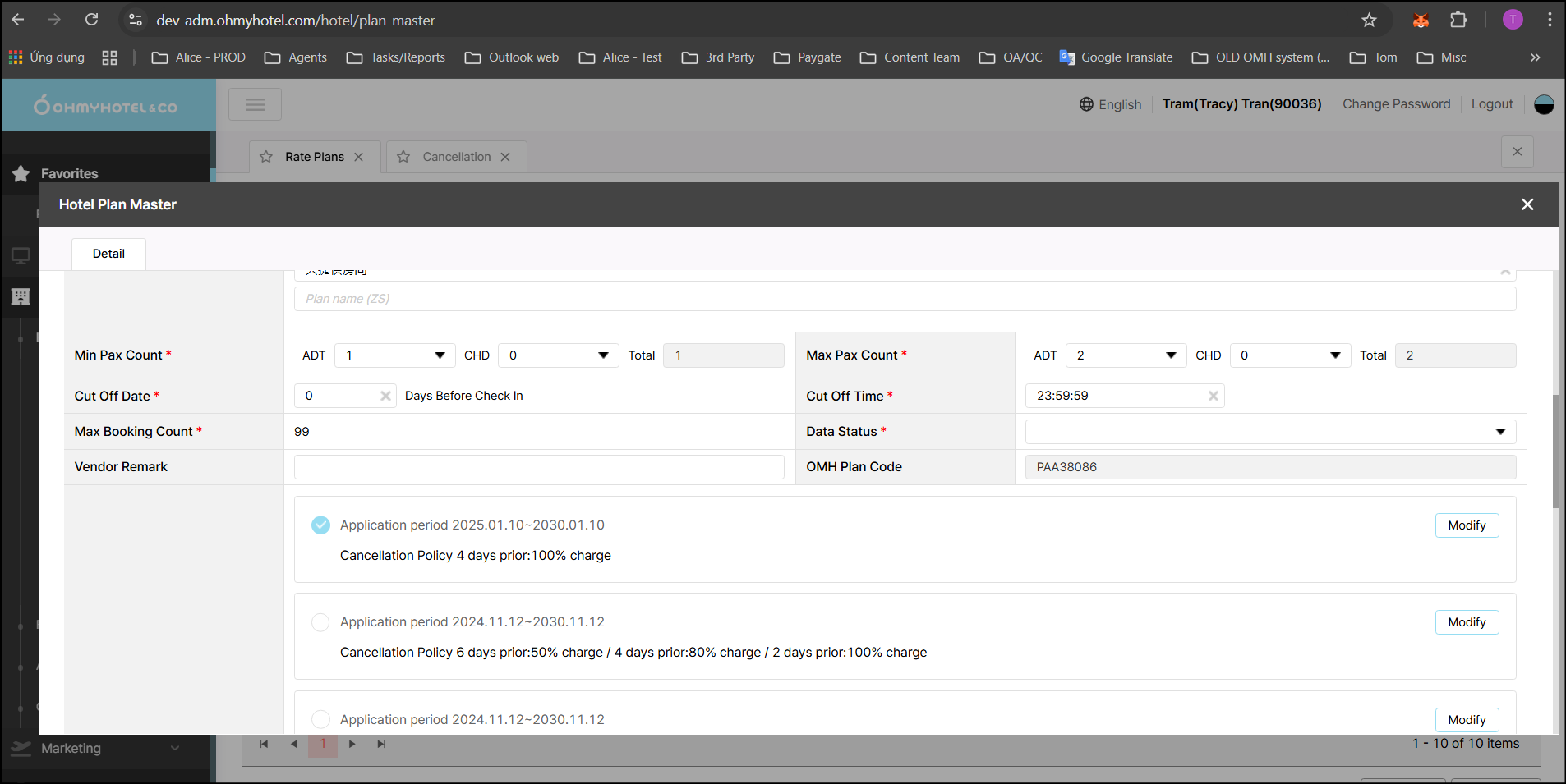 + Load toàn bộ Cancellation plicy đã tạo của Hotel đó ra để chọn.